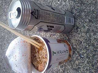 沖でキンキンのビールにアツアツのそば